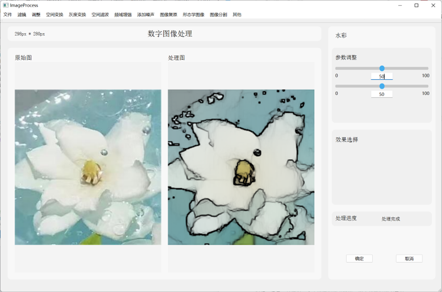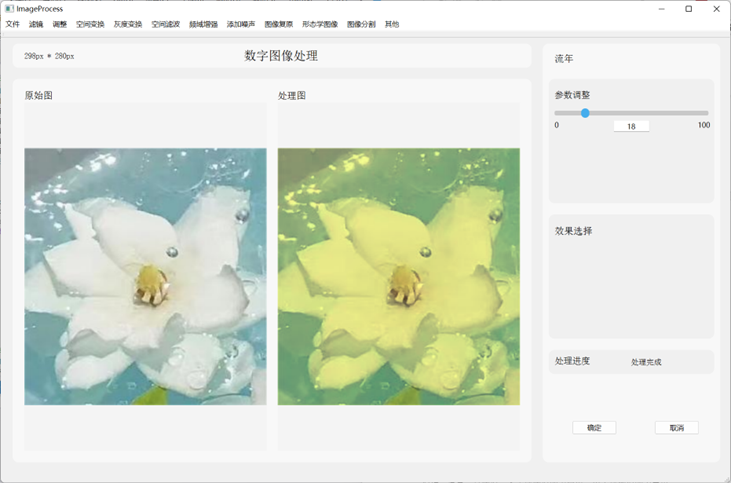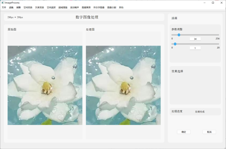 radius × radius范围内,选取属于该亮度等级的像素,并用其颜色填充中心像素。 - 这样,每个像素的颜色由其邻域内的最主要亮度决定,形成油画效果。
