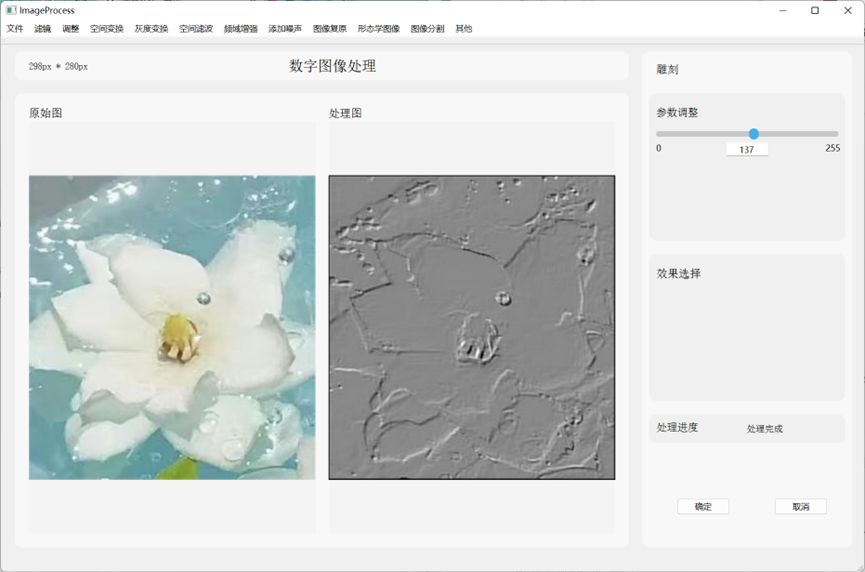 - 灰度化:将彩色图像转换为灰度图,便于进行雕刻效果处理。