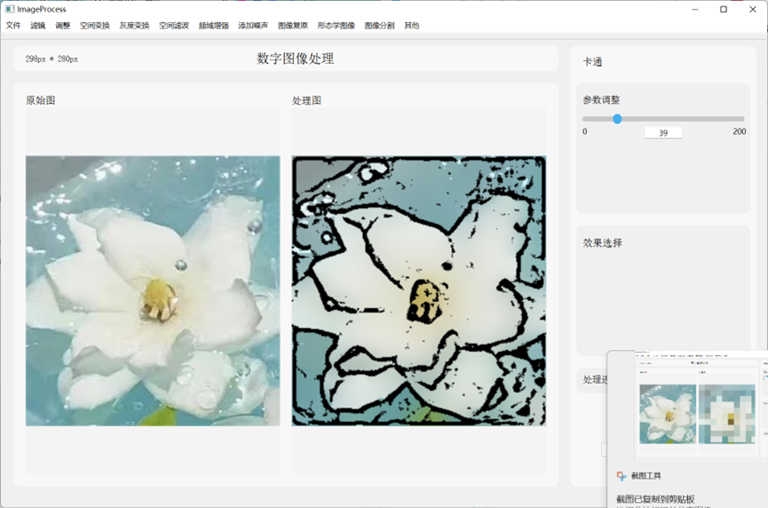 原理:卡通效果的原理是通过减少图像的细节,从而使图像看起来更加平滑和简化,就像是手绘的卡通画一样。