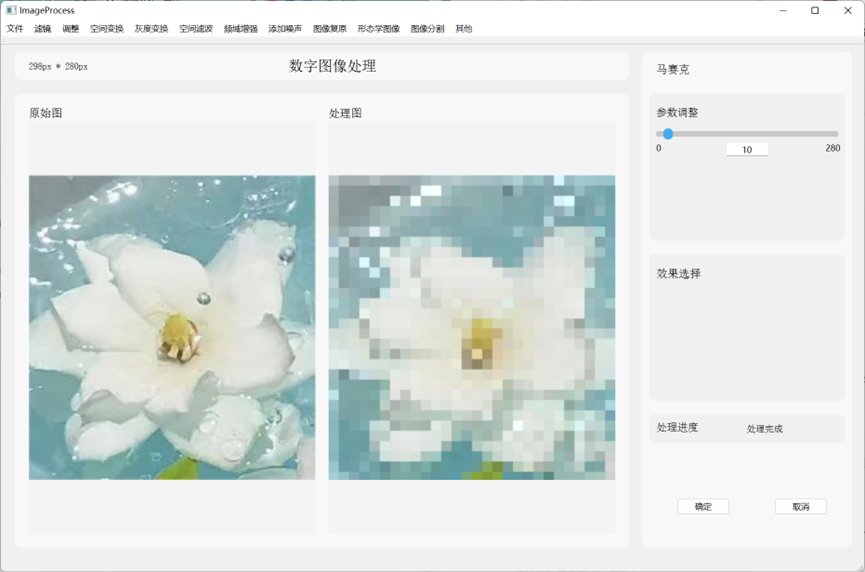 原理:通过将图像分割成多个小块,然后对每个小块内的像素进行像素化处理,即用块内的某个颜色代替所有像素的颜色,从而实现图像的模糊和抽象化效果。