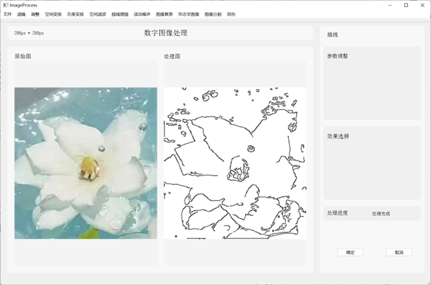 - 采用 自适应阈值(adaptiveThreshold) 提取边缘,使其呈现二值化的手绘线条效果。