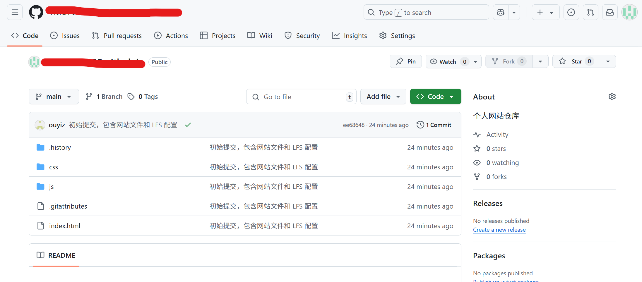 git commit -m "初始提交,包含网站文件和 LFS 配置"