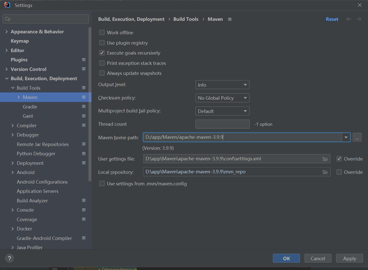 然后还要更改idea中maven的设置,选择自己maven所在位置,如下: